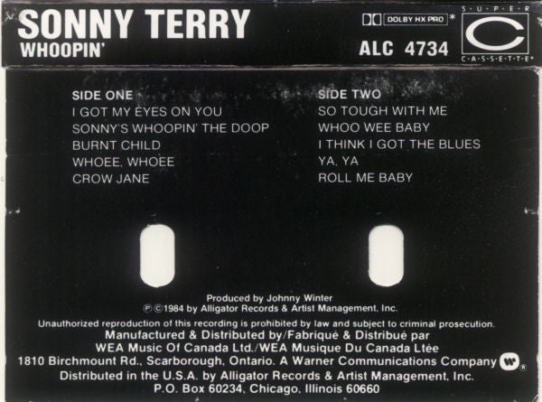 Sonny Terry, Johnny Winter, Willie Dixon, Styve Homnick – Whoopin'-Cassette Tape